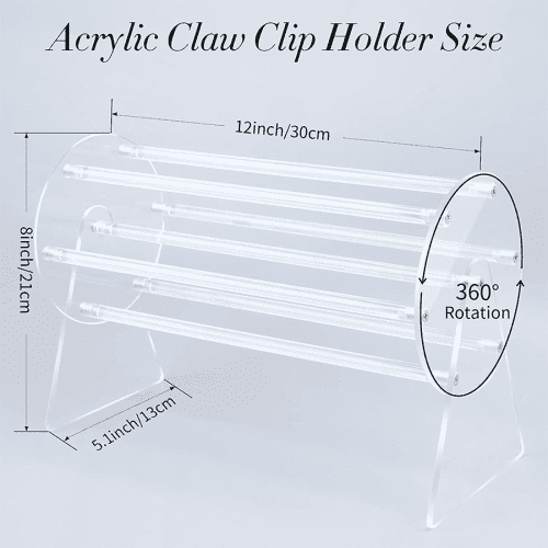 360 degree rotating hair clip organizer for easy access; Double layer acrylic design for storing claw clips and hair bands; Space saving hair clip organizer for dressing table; Durable transparent organizer for hair accessories