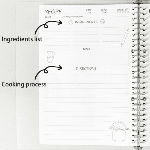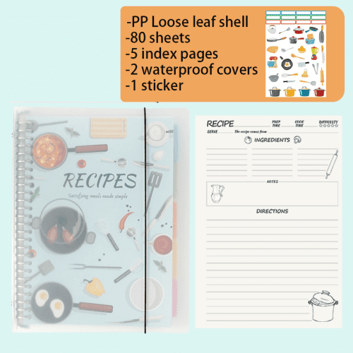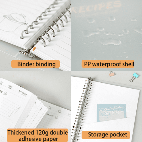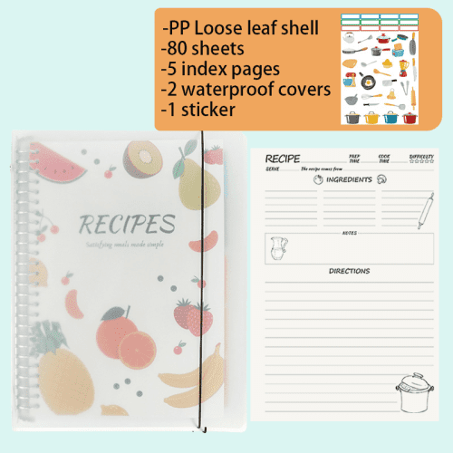 A4 loose-leaf recipe book for recording recipes, meal planning, and kitchen notes.