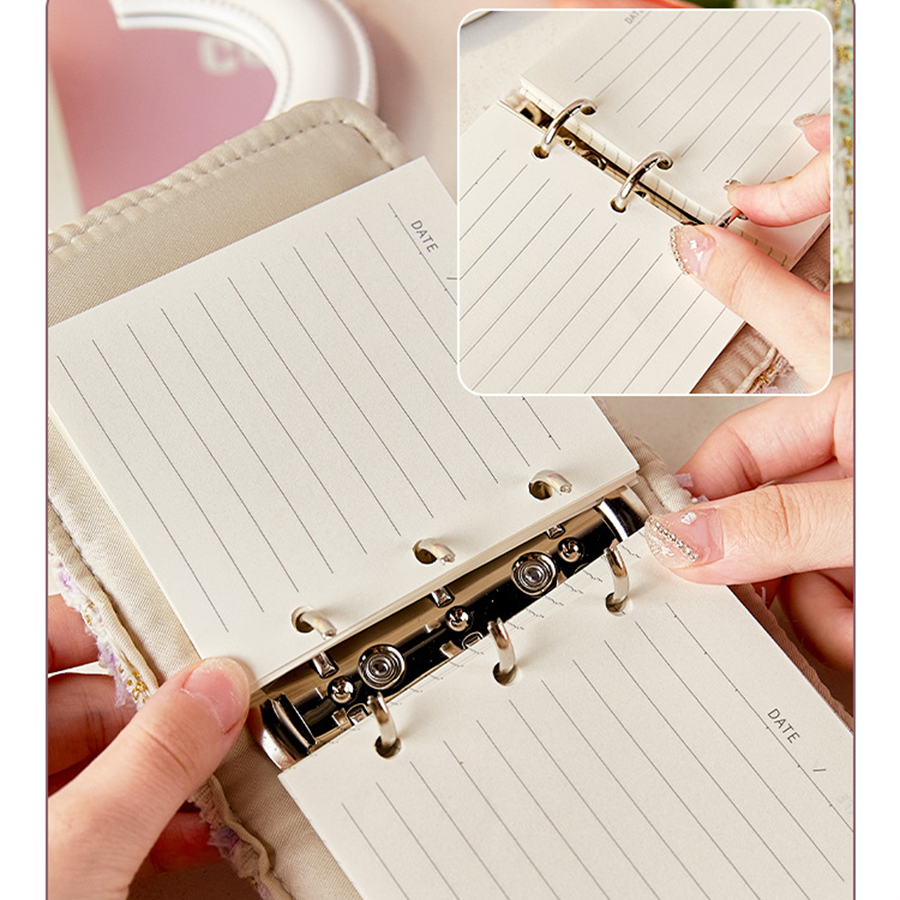 Cloth-covered loose-leaf miniature handwritten notebook with a delicate fragrance, featuring three-hole metal rings, a student pocket notebook, and a detachable woven handwritten notebook